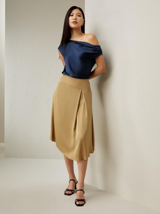 This versatile and stylish asymmetrical skirt is perfect for both commuting and everyday wear. The asymmetrical stitches and pleated detailing add an elegant and dynamic touch to the overall look. The asymmetrical hemline design adds a sense of movement and rhythm, allowing you to move freely and comfortably. Whether you’re headed to the office or running errands, this skirt will ensure you look chic and sophisticated while maintaining a sense of effortless style.-