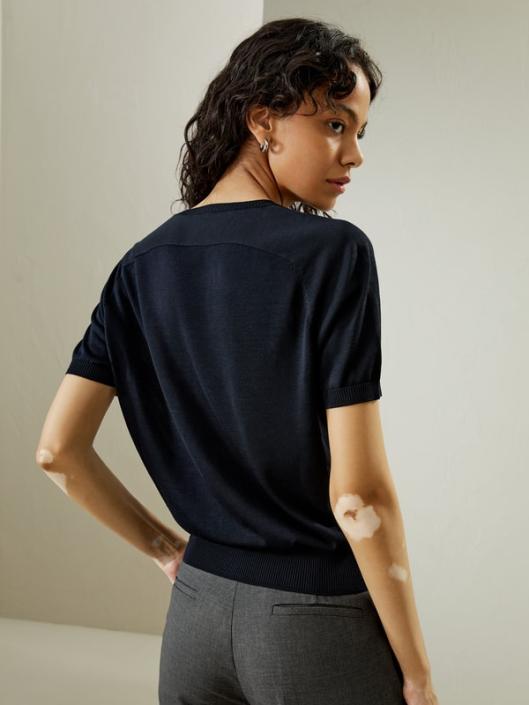 100% machine washable silk. From workdays to movie nights, our silk t-shirt is your go-to for any occasion. This basic and cute short-sleeved tee will take you from day to night with ease, perfect for any occasion.-