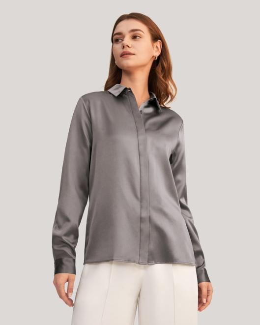 A timeless classic made from the finest Charmeuse silk, which gives this easy-to-care-for shirt a beautifully soft luster. Whether teamed with a suit or jeans, the neat collar and concealed mother-of-pearl buttons create a well-groomed look.The shirt sold over 15,000+ every year-