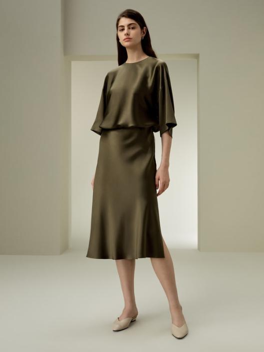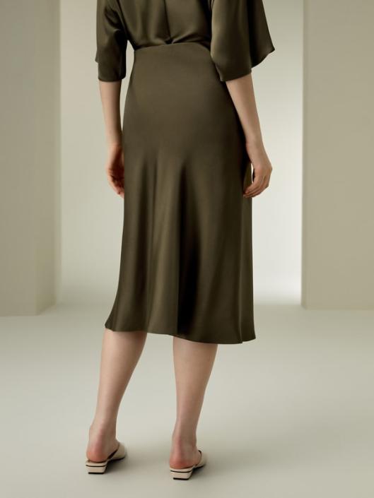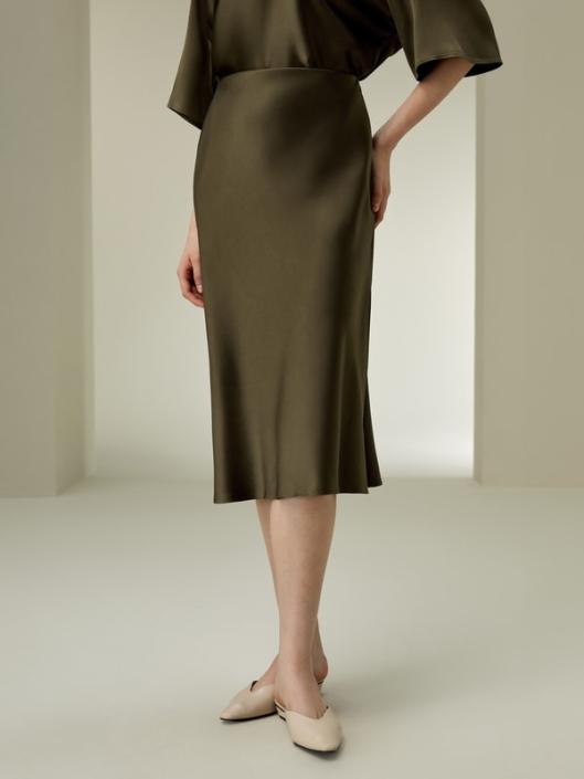 Elevate your style with this luxurious bias-cut silk midi skirt, designed for a beautiful drape. Crafted from 32MM double-faced silk charmeuse, this skirt offers a luxurious, skin-friendly, consistent inside and out fit for all-day comfort.The upgraded waistband adds texture and subtle structural intelligence to the design. Whether you’re wearing it for everyday occasions or special events, this skirt offers the ultimate in comfort and sophistication.-