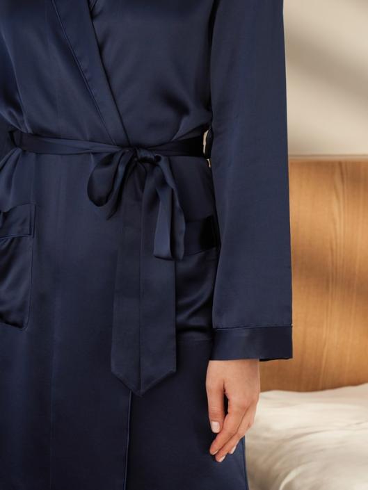 Throw over anything to look great quickly. The Mid Length Silk dressing gown is a great all-rounder. This silk dressing gown is guaranteed to fit you just right and feel good against your skin. Understated luxury has never looked so good, available in multiple colors for all of your moods.-