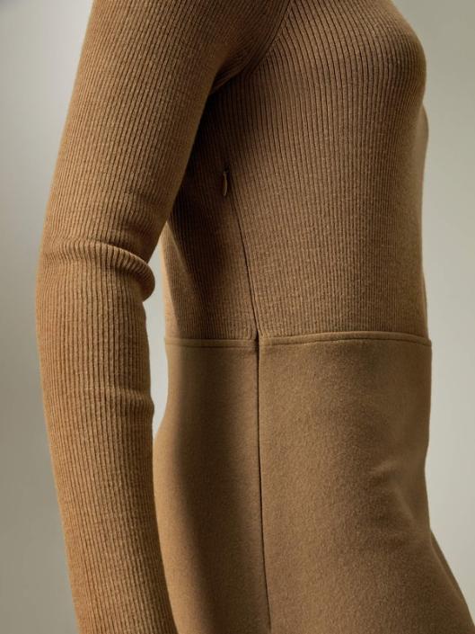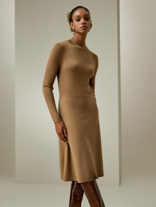 Crafted from premium materials of wool and nylon, this dress is designed to provide both warmth and softness against the skin, ensuring supreme comfort. The upper section features a knitted semi-high collar and a sleek, slim-fitting base layer style that seamlessly blends elegance with modern fashion. The lower part showcases a beautifully woven knitted wool fabric skirt hem, adding a touch of charm to the overall design. With its knee-length skirt and mid-waistline, this dress gracefully enhances every curve of the body, offering a flattering silhouette. Perfect for any occasion, this versatile piece combines luxurious comfort with timeless style.-