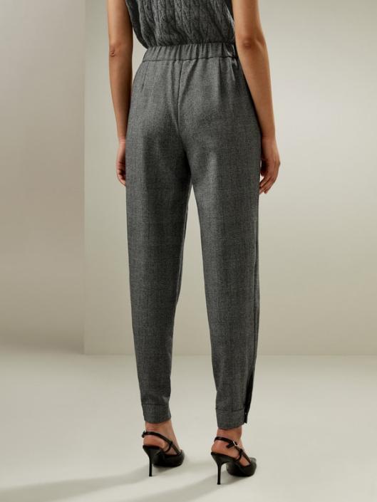 Elevate your style with our Glen Check Worsted Wool Trousers, where professionalism meets leisure. These trousers feature an adjustable drawstring waist, practical slip pockets, and metal buckles at the ankles for a customizable fit. Crafted from comfortable and elegant worsted wool, they offer both comfort and timeless fashion. Perfect for versatile styling through the seasons.-