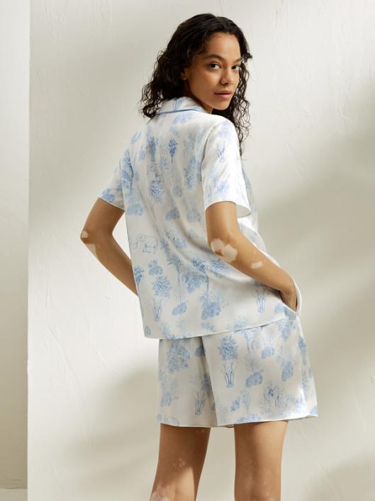 Immerse yourself in the embrace of Mother Earth with our “La Terra” short-sleeved pajama set. Designed to offer unrestricted movement and enhanced breathability, this set allows you to experience ultimate comfort and freedom. Feel the connection to nature as you indulge in the soothing softness of organic silk, providing a tranquil and rejuvenating sleep experience.-