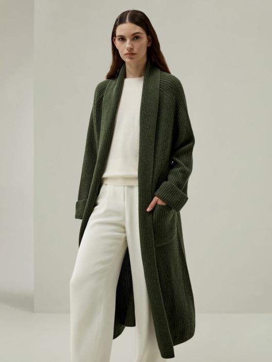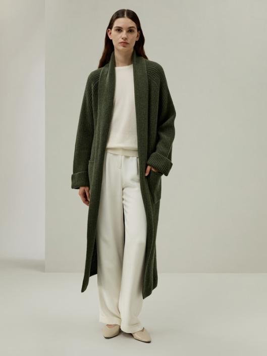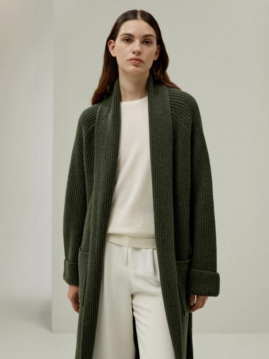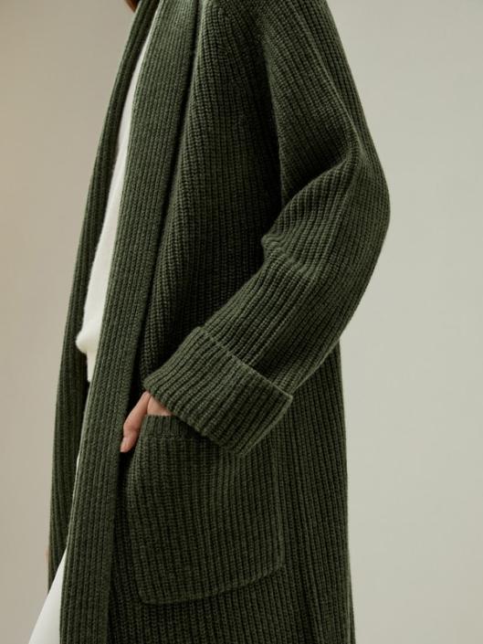 Crafted from a harmonious blend of cashmere and wool, this cardigan offers an unrivaled tactile experience with its super soft and comfortable texture. The folded collar and cuffs impart a hint of refined sophistication. The functional side pockets not only serve its functional purpose, it also adds classic aesthetic charm. The evergreen cardigan is Lydia’s perfect transitional piece. Whether it be cosy evenings at home, a cosy wrap around when travelling, or for late summer and autumn evenings it carries through year round comfort.-