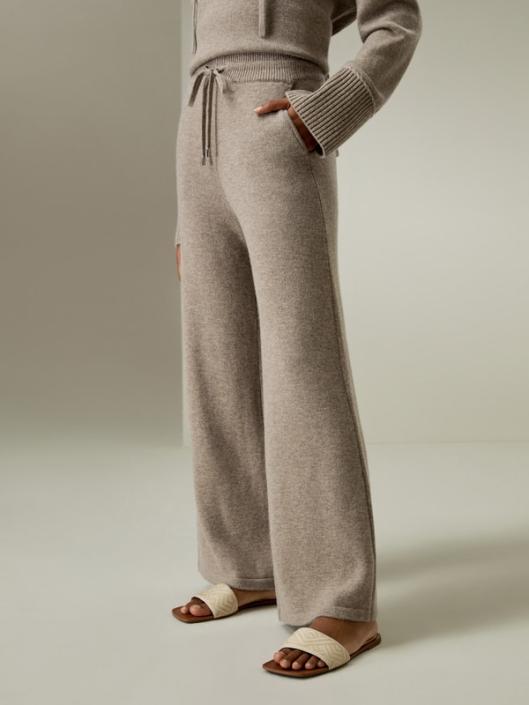 Crafted from a luxurious blend of wool and cashmere, these pants offer exceptional warmth while providing a soft and comfortable fit. With a finely woven plain knit pattern, these pants exude a sense of texture and quality. The wide-leg silhouette offers a flattering and accommodating fit, beautifully enhancing your body shape. These pants are versatile and can be paired with a matching sweater for a coordinated look or styled with a coat for a sophisticated ensemble. Create effortlessly chic and casual outfits that showcase your personal style.-