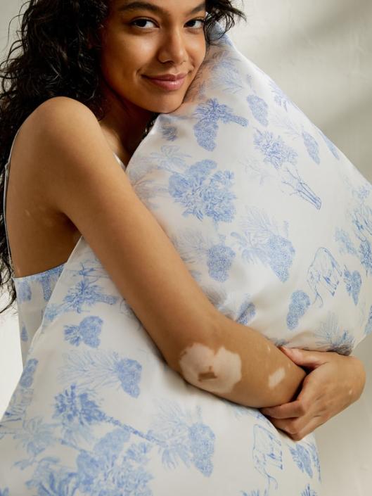 Our carefully selected 19mm silk fabric is soft, smooth and silky to the touch. Designed with an envelope structure and no loose leaves, the pillowcase is neater and simpler. The blue print design is full of romance and fashion, adding a touch of elegance and sophistication to your bedroom.-