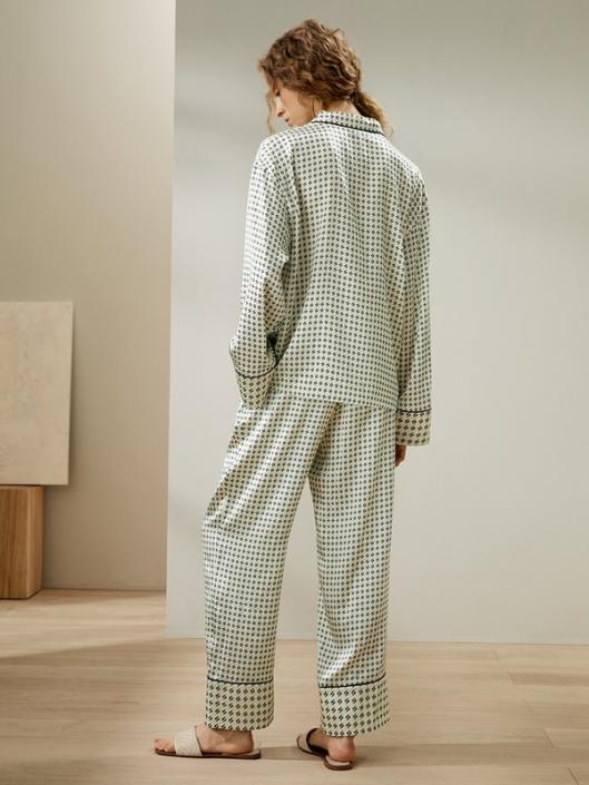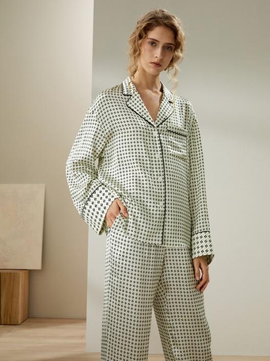 Inspired by the wall tiles of The Green Room in the Pena Palace, choosing from the iconic Dark Olive and Lilywhite, to add uniqueness and vintage charm. Whether for a glamorous evening or a perfect weekend outfit, silk pajamas are the right choice. Elegance and savoir-faire must never be lacking even, and above all, in the bedroom.Now relax yourself and enter sleep mode in this comfortable pajamas set.-
