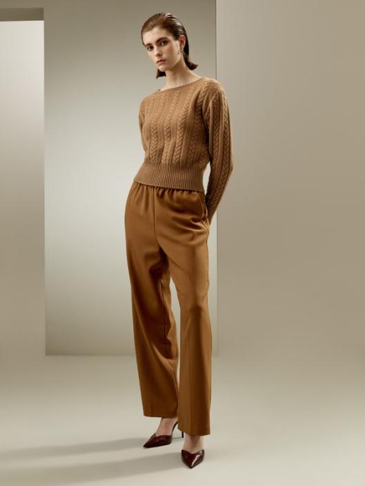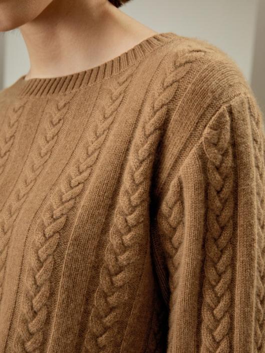 Our toffee coloured crew neck Sweater is meticulously knitted from 100% cashmere wool for luxurious comfort. Complete with ribbed cuffs, neckline, and hem. The sleek, classic round neckline is complemented by a high-threaded cinched waist that frames a sophisticated silhouette and exudes timeless elegance. Easily transitioning from autumn to winter, this casual-chic style is perfect for wearing alone or layering. This extraordinary piece is sure to become a treasured addition to your wardrobe.-