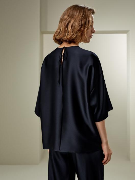 Crafted from luxurious 32 momme double-faced Silk Charmeuse, this 100% silk blouse offers a relaxed, skin-friendly fit for all-day comfort. Featuring a refined crewneck design and a playful tie-back detail, it effortlessly combines elegance with a youthful touch.-