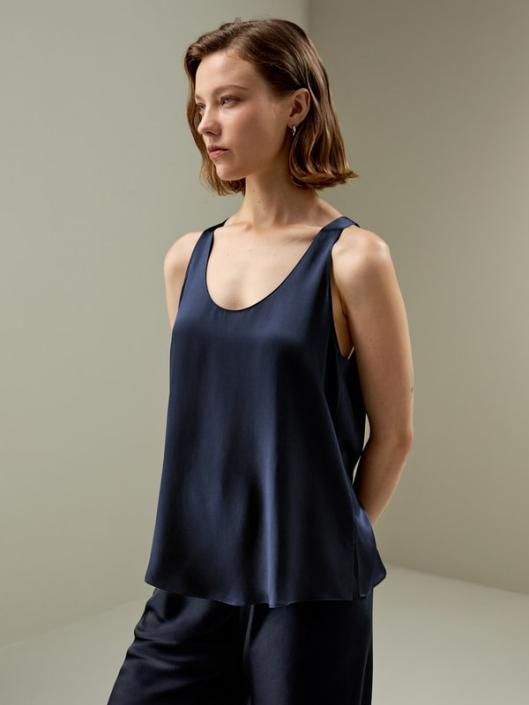 Crafted from luxurious Silk Charmeuse, this classic camisole features discreet buttons to secure bra straps, providing both comfort and functionality. The slight A-line silhouette offers a flattering fit for all body types, making it a versatile piece for any occasion.-