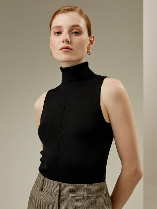 Our turtleneck sleeveless top is crafted from washable silk knit and is designed to elevate your everyday style throughout the year. It features a subtle convex stripe on the front, adding enriching detail to the simple design. It is beyond comfort to wear with its slim fit and figure-hugging characters. This versatile top can be worn as loungewear, workwear, or for achieving a casual daily or relaxed party look.-