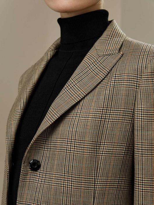 Silk Wool Blend Glen Check Straight Cut Blazer | Women Lilysilk Knitwear