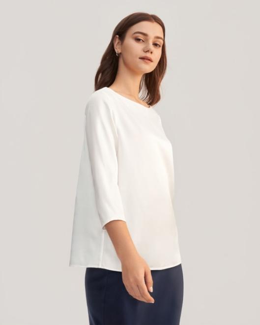 Simple yet elegant, the 3/4 Sleeve Boat Neck Silk Top is made from soft, skin-friendly silk with a hint of stretch to ensure you feel comfortable at all times. When you need to look good quickly with minimal effort, look to this top to solve your problem. The chic boat neck is the epitome of class and will be sure to flatter you.-