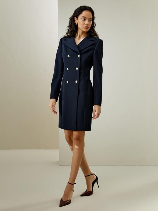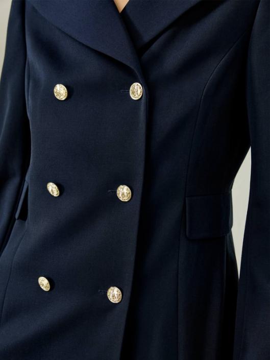 This classic retro dress coat is a timeless piece crafted from premium Merino wool fabric. This double-breasted coat features a waist-emphasizing design, accentuating your curves in all the right places. The notched lapel exudes a sense of classic femininity, adding a touch of vintage charm to the overall look. With its tailored and figure-flattering silhouette, this coat offers a sleek and polished aesthetic. It is perfect for wearing during the spring, autumn, and winter seasons. The versatile and classic design allows for effortless pairing with various outfits, making it suitable for both professional and everyday wear.-
