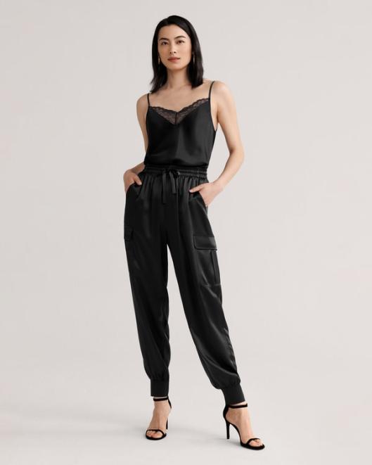 Comfort-meets-style in the Safari Military Silk Pants, a must-have fall update to our popular crepe de chine silk pants in a similar style. These refreshed pants keep the same classic fit you know and love, updated with stretchable trouser legs and waistband for a customized fit. Crafted from charmeuse silk, the safari-inspired design is effortless as laid-back casual wear or smart workleisure.-